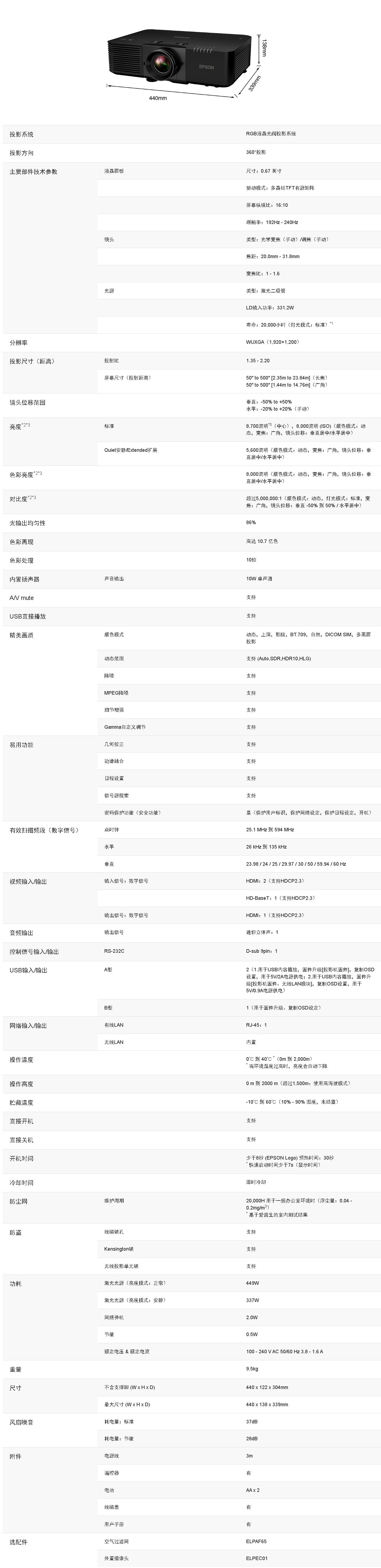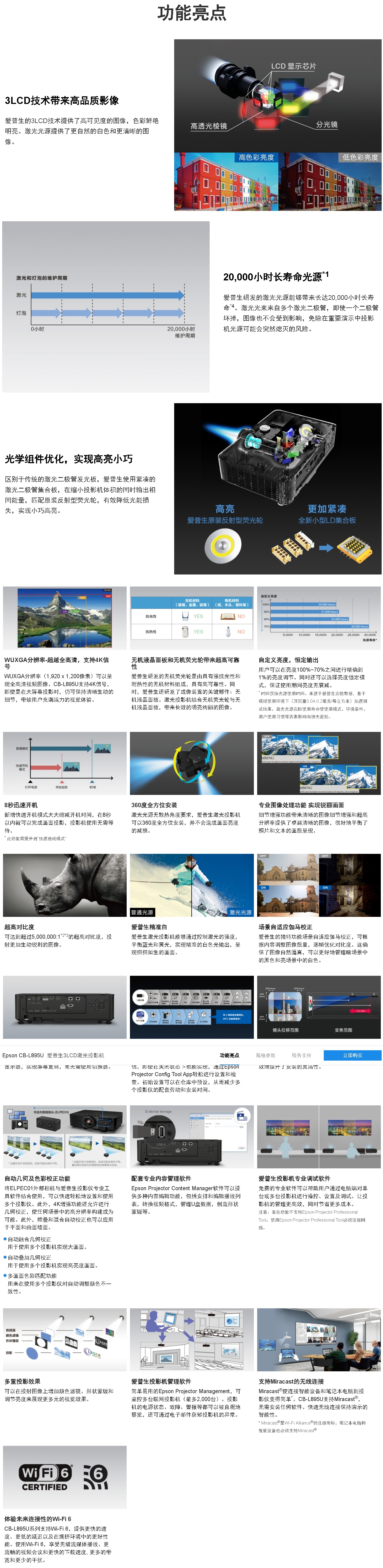 Epson CB-L895U 激光投影机[暂无定价] 自营