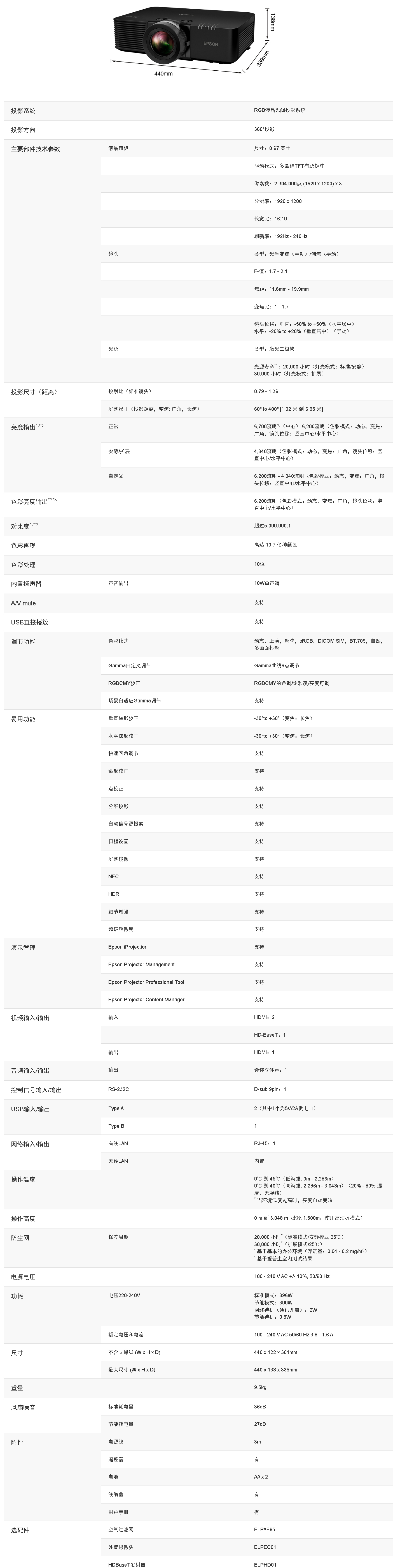 Epson CB-L695SU 激光工程投影机[暂无定价] 自营