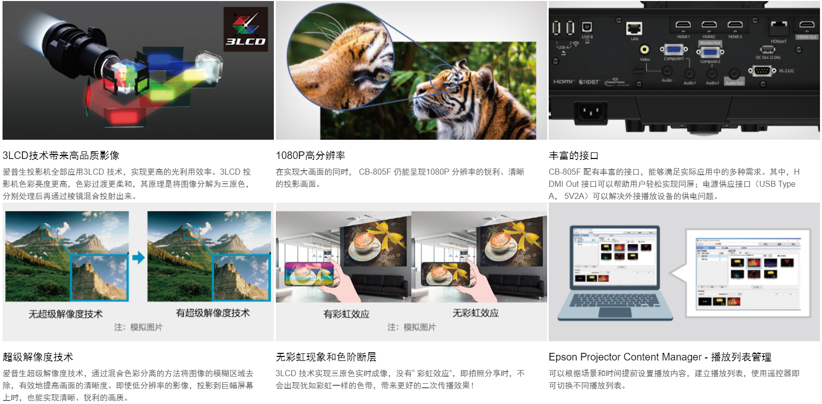 ¥700000.00Epson CB-805F 高清高亮激光超短焦投影机